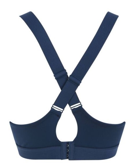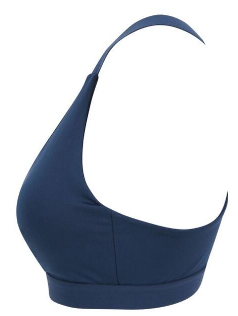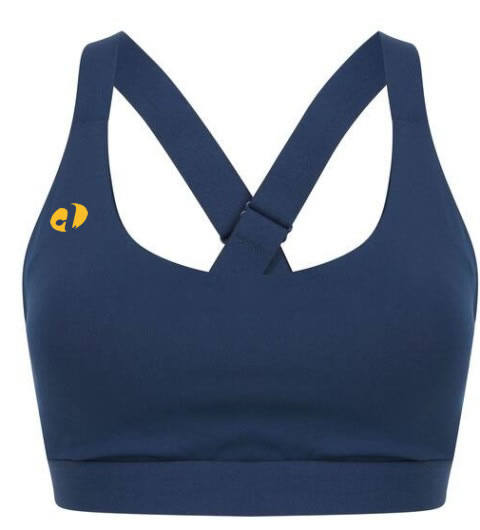 Brassière sport. Maintien optimal et sensation de sécurité. Confortable offrant une bonne mobilité. 86% polyester / 14% élasthanne. Col rond avec bretelles élastiques croisées dans le dos. Fermeture à agrafes. Bonnets permanents, non amovibles.