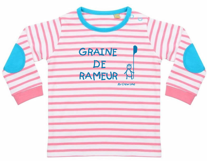 T-shirt rayé bébé manches longues : – Matière : 100% coton jersey, 160 g/m² – T-shirt rayé à manches longues – Col et coudes contrastés – Fermeture à boutons-pression YKK autour du cou – Manches montées – Doubles surpiqûres