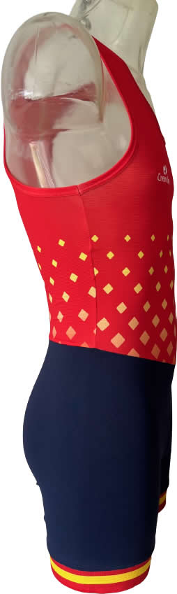 Combinaison courte short en Meril® et haut en mesh sublimé.(assure une respirabilité ainsi que le confort et la légèreté) Coupe Unisexe. Haut matière mesh : le mesh est un type de tissu connu des sportifs, car c’est un textile micro-aéré, qui permet à la transpiration de s’évacuer du corps, et donc de pratiquer une activité sans être mouillé pendant l’effort