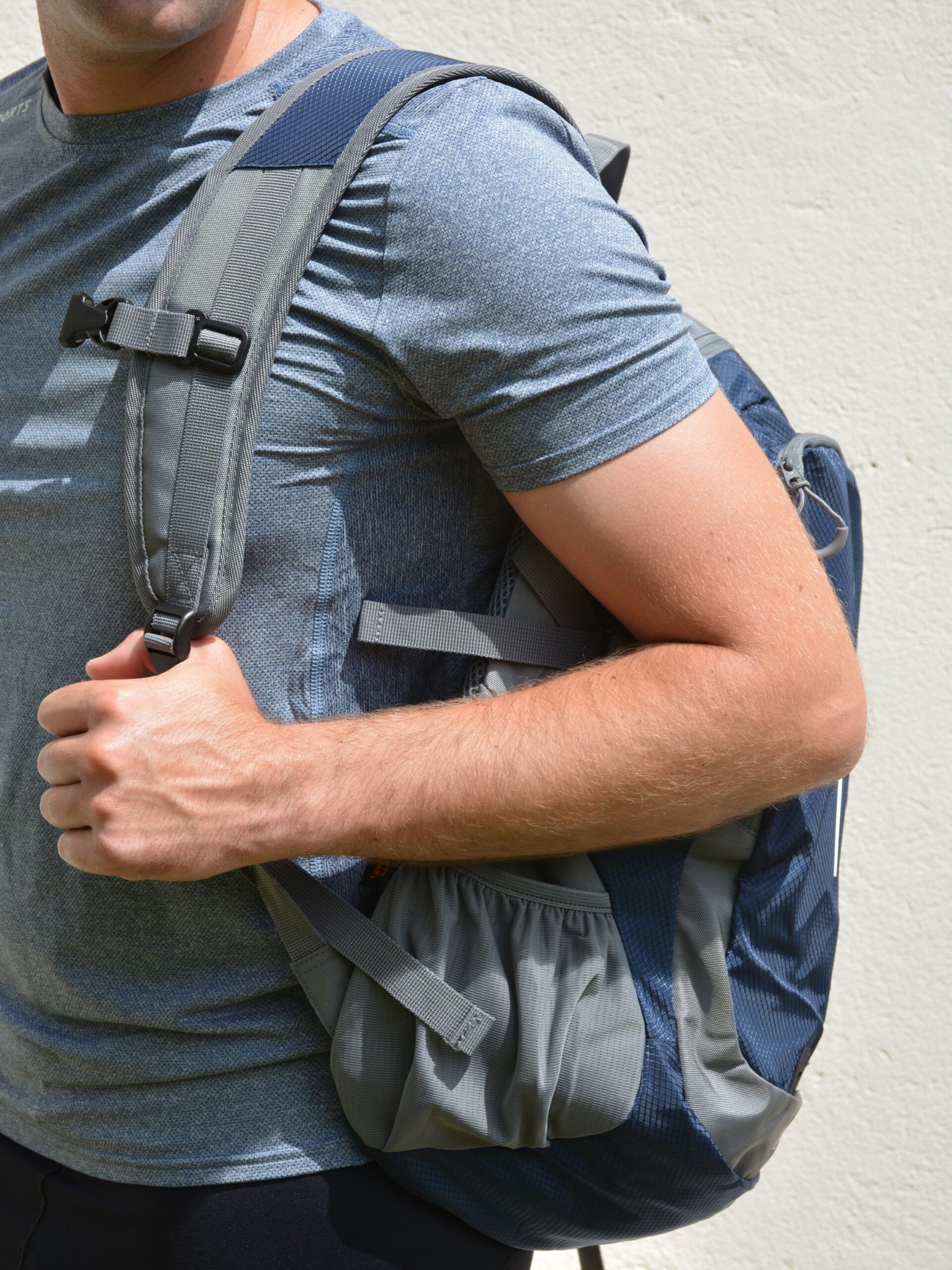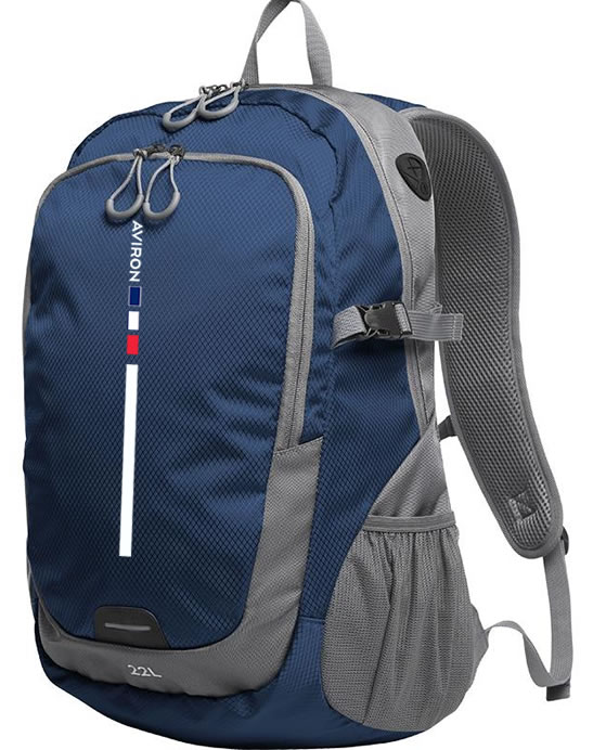 Sac à dos Matière : Nylon 420d et ripstop Compartiment principal zippé Litrage : 22 L Sangles thoraciques élastiques et amovibles en hauteur Dos rembourré Poche avant zippée Poches latérales en filet Bandes réfléchissantes à l'avant Poignée Ouverture pour écouteurs Dimensions de l'article: 49 x 34 x 18,5 cm