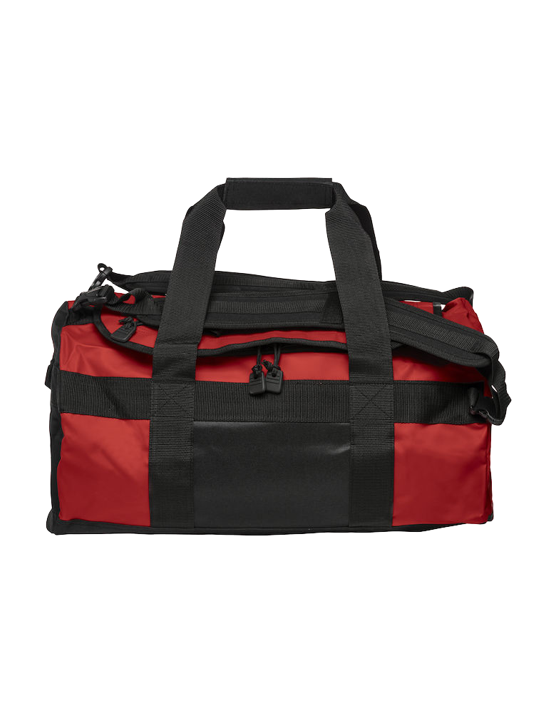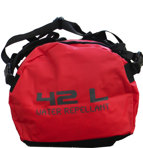 Sac de sport et sac à dos combinés en un – Traitement imperméable – Réglages velcro. Dimensions : 51 x 33 (diamètre) cm Volume : 42L Tissu extérieur en bâche PVC – Base et côtés en polyester.