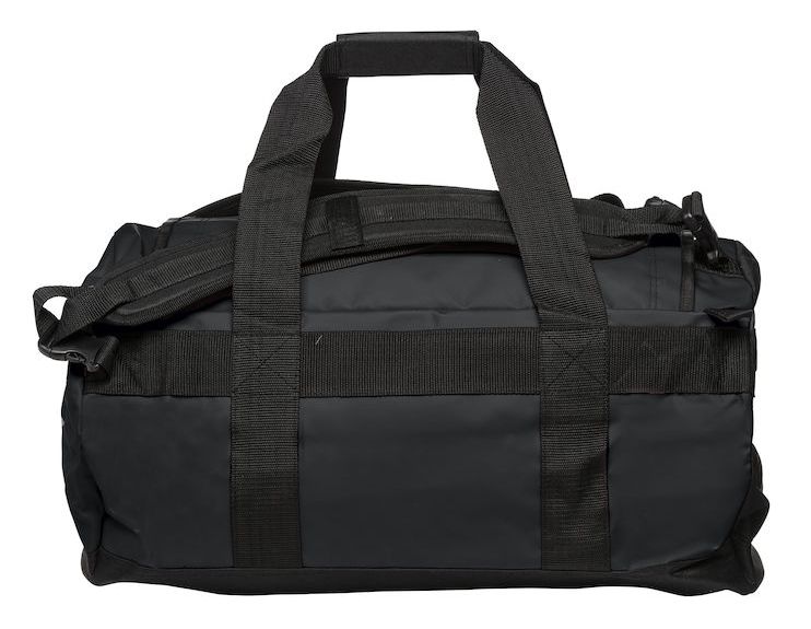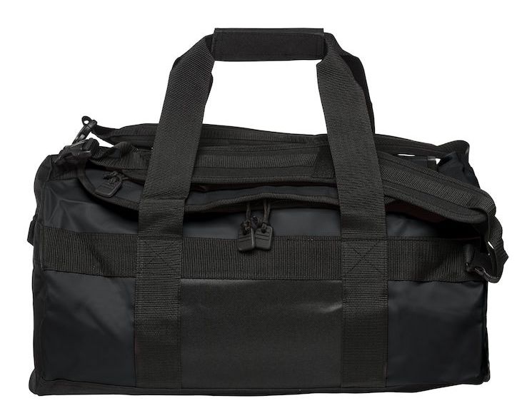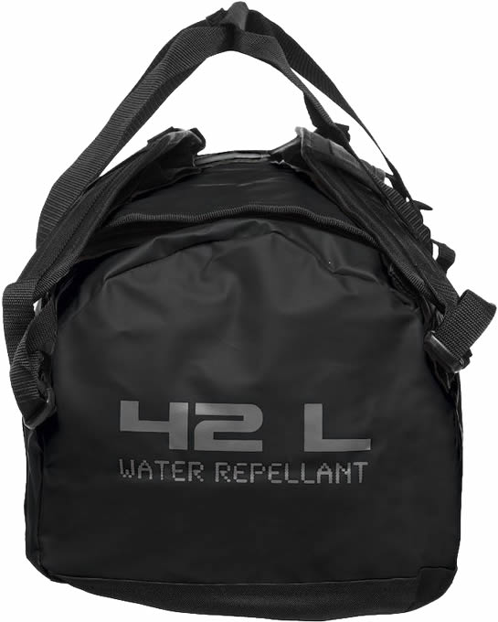 Sac de sport et sac à dos combinés en un – Traitement imperméable – Réglages velcro. Dimensions : 51 x 33 (diamètre) cm Volume : 42L Tissu extérieur en bâche PVC – Base et côtés en polyester.