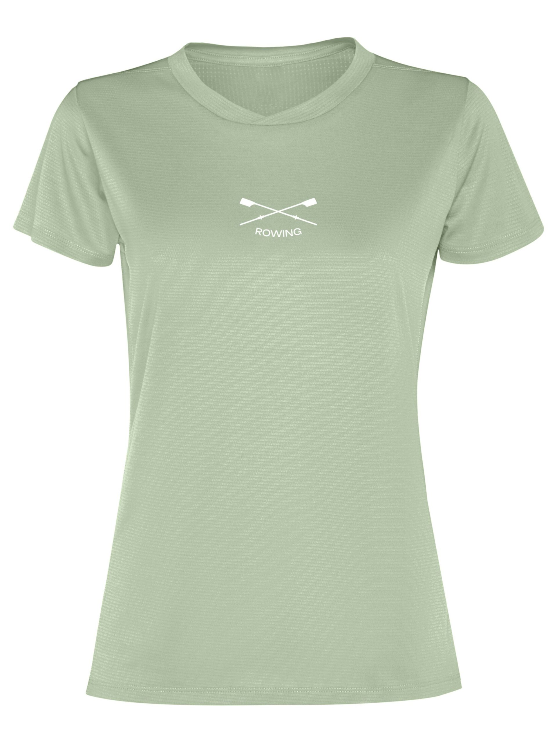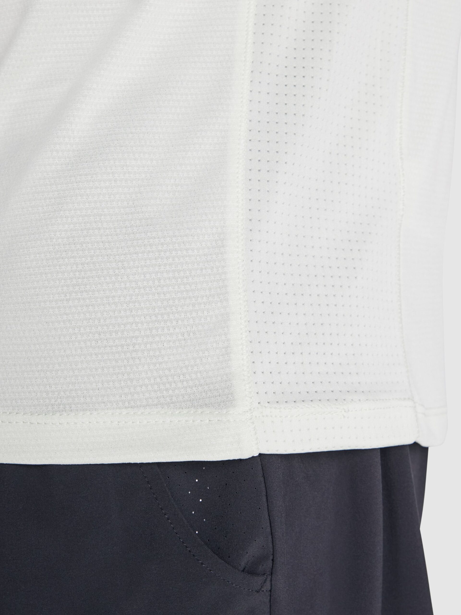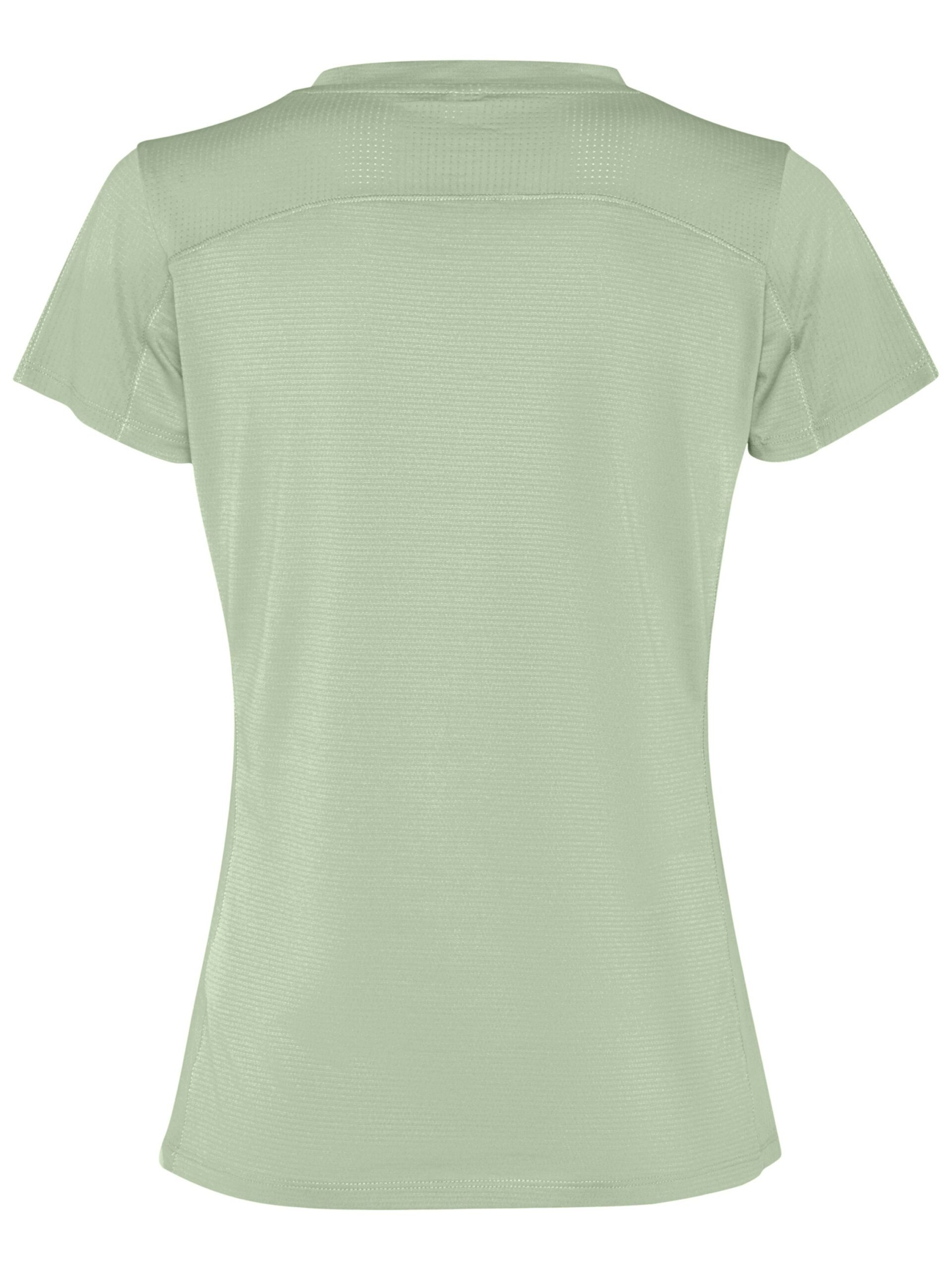 T-shirt technique à manches courtes pour femme. Tissu léger en polyester recyclé. · Col à détails croisés et coutures de recouvrement. · Empiècement dos et manches en tissu respirant. Combiné dans des tissus respirants et élastiques.